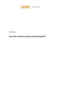 React native -sovelluksen migraatio Unity-kehitysympäristöön