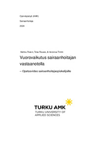 Opinnäytetyön tehtävänä oli laatia sairaanhoitajaopiskelijoille opetusvideo vuorovaikutuksesta sairaanhoitajan vastaanotolla. Tavoitteena oli lisätä tulevien sairaanhoitajien osaamista vuorovaikutuksesta sairaanhoitajan vastaanotolla. Opinnäytetyö toteutettiin toiminnallisena opinnäytetyönä ja sen toimeksiantajana oli Turun ammattikorkeakoulu.