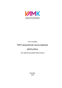 Opinnäytetyössä kuvataan niin kutsuttujen Pay-As-You-Throw (PAYT)-jätemaksujärjestelmien toimintaa ja niiden pohjalta perehdytään Käylän kylässä Kuusamossa 13.12.2023 – 31.5.2024 suoritettuun uudentyyppisen älykkään lajitteluaseman pilottiin ja sen käyttökokemuksiin, joita Kuusamon kaupunki hyödyntää oman PAYT-järjestelmän kehittämisessä. Opinnäytetyössä esitellään myös muualla Euroopassa suoritettuja PAYT-järjestelmien käyttöönottotestauksia, joihin on yhdistetty niin kutsuttu Know-As-You-Throw (KAYT)-konsepti.