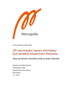 Opas vahvistaa CP-vammaisen lapsen toimintakykyä edistävää ohjaamista Keniassa, Afrikassa. Oppaan tavoite on lisätä päiväkodin työntekijöiden ja lasten läheisten tietoperustaa CP-vammasta ja siten auttaa ymmärtämään lapsia, joilla on CP-vamma.