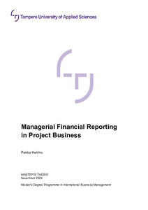 The results of the research indicate that a carefully planned managerial financial reporting process can significantly enhance a company’s abilities of financial forecasting, risk management, managerial data-driven decision-making and overall financial performance when operating in project business. Managerial financial reporting involves strategic and operational perspectives and is needs to be integrated on the managerial decision-making process of a company. Findings of the study suggest that continuous improvements in managerial financial reporting are essential for a company to remain competitive in project business.