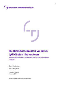 Opinnäytetyö toteutettiin toiminnallisena opinnäytetyönä, jonka lopputuloksena luotiin informatiivinen vihko työikäisille 18–64-vuotiaille. Vihkoa tullaan hyödyntämään yhteistyökumppanimme toimesta työterveyden yhteydessä. Vihko auttaa lisäämään tietoisuutta ravitsemuksen merkityksestä ja terveysvaikutuksista, mikä on olennaista lihavuuden ehkäisyssä. Jatkotutkimuksissa tulisi hyödyntää kehonkoostumusmittausta BMI:n ja vyötärönympäryksen rinnalla, jotta lihavuuden aste voitaisiin arvioida kokonaisvaltaisemmin.