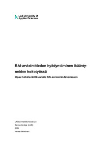 Opinnäytetyö toteutettiin kehittämistyönä, josta valmistui RAI-arviointien tekoon opas toimeksiantajalle. RAI on järjestelmä, jolla voidaan luotettavasti arvioida ja havainnoida ikääntyneen toimintakykyä. Hyvinvointialueilla on vanhuspalvelulain mukaan velvollisuus käyttää RAI-arviointia iäkkäiden toimintakyvyn ja palvelutarpeiden arvioinnissa. RAI-arviointien tekemisen tueksi oli henkilöstöllä noussut esiin tarve selkokieliselle oppaalle RAI-käsikirjan lisäksi. Yhteistyöpalaverissa henkilöstö sai tarkemmin kertoa itse toiveista ja tarpeista kehittämistyöhön. Tavoitteena oli lisätä ymmärrystä RAI-arvioinneista saatavista hyödyistä sekä arviointitulosten hyödyntämisestä hoito- ja palvelusuunnitelmassa.