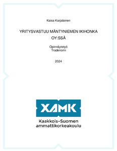Tämän opinnäytetyön aihe on yritysvastuu pienyrityksessä. Opinnäytetyön toimeksiantaja on Mäntyniemen Ikihonka oy, joka suunnittelee uutta matkailullista palvelukonseptia, ”Mäntyniemen Hovinpolkua”. Palvelun kehittelyssä yritysvastuullinen toiminta on yhtenä osana liiketoimintastrategiaa. Tutkimuksen tavoitteena on selvittää, mitkä tekijät ovat olennaisia Mäntyniemen Ikihonka oy:n yritysvastuun kehittämisessä. Alakysymykset ovat seuraavat: 1. Keitä/mitä ovat Mäntyniemen Ikihonka oy:n tärkeimmät sidosryhmät? Millaisia odotuksia ja/tai vaatimuksia yrityksen sidosryhmillä on yritysvastuusta? 2. Mitkä ovat yrityksen olennaisimmat tekijät yritysvastuussa? 3. Millaisia lakeja, yhteiskunnallisia säädöksiä, direktiivejä ja ohjeita on ohjaamassa yritysvastuuta?