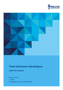 Toimintoja ja työprosesseja on tarve muuttaa, jotta resurssit voidaan kohdentaa parhaalla mahdollisella tavalla. Tässä tarkoituksessa Itä-Uudenmaan poliisilaitoksella on kehitetty ja otettu käyttöön JHOP, Juttujen hallinta-, ohjaus- ja priorisointialusta. JHOP on kehitetty erityisesti auttamaan rikostutkintaa suurten juttumäärien hallinnassa ja työn priorisoinnissa. Toiminnan kehittäminen kuormittuneessa työyhteisössä vaatii hyvää muutoksen johtamista. JHOP on vaatinut Itä-Uudenmaan poliisilaitoksella merkittäviä muutoksia toimintatapoihin. Tästä huolimatta tutkimukseni perusteella JHOP:in käyttäjät kokevat sen olevan jo nyt tärkeä työväline rikostutkinnan työn hallinnassa ja priorisoinnissa. Sen käyttö on parantanut tilannekuvan muodostamista ja työn hallinnan kokemusta. Tämän tutkimuksen perusteella sen käyttäjät ovat siihen erittäin tyytyväisiä eivätkä haluaisi enää työskennellä ilman JHOP:ia.