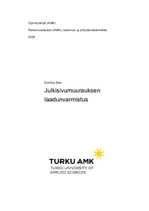 Opinnäytetyön tavoitteena oli kuvata julkisivumuurauksen laadunvarmistusta ja lisätä lukijan tietämystä aiheeseen liittyen. Opinnäytetyössä tarkasteltiin Turun Skanssiin rakennettavan uudiskerrostalon julkissivumuurausta. Kohteen KVR-urakoitsijana toimi tämän opinnäytetyön toimeksiantaja Jatke Länsi-Suomi.