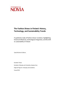 The study is divided into three main parts: the history of fashion shows, the integration of technology and sustainability in fashion shows, and interviews with four Finnish fashion industry experts who share their perspectives. The thesis examines the Finnish culture of fashion shows throughout its chapters.