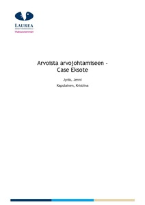 Asiasanat: Arvot, arvojohtaminen, strategiatyö, arvoristiriita, arvojen jalkauttaminen, muutosjohtaminen, muutosagentti.