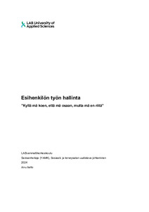 Esihenkilön työn hallinta : "Kyllä mä koen, että mä osaan, mutta mä en riitä"