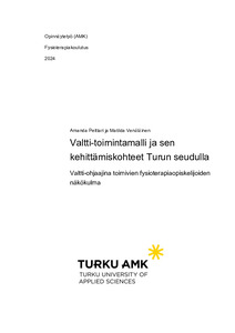Kehittämistyön tavoitteena oli selvittää, miten Valtti-toimintamalli toteutuu tällä hetkellä Turun seudulla. Tarkoituksena oli kuvata Valtti-toimintamallin tämänhetkinen toiminta Turun seudulla ja tutkia fysioterapiaopiskelijoiden kokemuksia Valtti-ohjaajana toimimisesta. Tuotoksen avulla pyrittiin kehittämään Turun seudun omaa Valtti-toimintamallia.