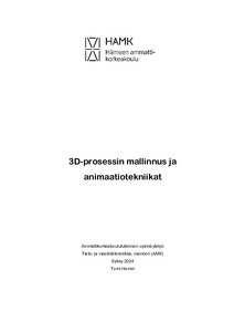 Opinnäytetyön tavoitteena oli luoda 3D-malleja ja tuottaa animaatioita Blender 3D -ohjelmistolla. Tavoitteiden saavuttamiseksi perehdyttiin mallintamisen vaiheisiin, joissa esiteltiin oikeaoppisia menetelmiä ja parhaita käytäntöjä. Näihin käytäntöihin kuului muun muassa topologian rakenteen optimointi, reunanvirtauksen ohjaaminen, normaalien suuntaaminen oikein sekä verteksimäärien vähentäminen mallien prosessoinnin tehostamiseksi. Lisäksi tutkittiin Blenderin fysiikkasimulaatioiden ja partikkelijärjestelmien toimintaa.