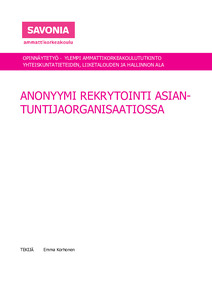 Opinnäytetyön tarkoituksena oli selvittää anonyymin rekrytoinnin, sekä muiden rekrytointikäytäntöjen vaikusta monimuotoisuuden, syrjimättömyyden, sekä yhdenvertaisuuden edistämiseen. Työn tilaaja Savonia Ammattikorkeakoulu tukee vahvasti monimuotoisuutta ja haluaa olla houkutteleva työnantaja oman strategiansa mukaisesti.