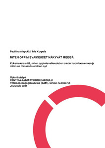 Opinnäytetyössä halusimme kuvailla, kuinka oppimisvaikeudet otetaan nykyään huomioon koulussa ja rippikoulussa verrattuna ennen. Syvennyimme myös siihen, miten oppimisvaikeudet näkyvät työelämässä. Perehdymme myös siihen, miten oppimisvaikeudet vaikuttavat mielenterveyteen ja päihteiden käyttöön.