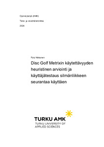 Opinnäytetyössä tutkittiin Disc Golf Metrix -nimisen ohjelmiston käytettävyyttä. Disc Golf Metrix eli Metrix sisältää ominaisuuksia, kuten kilpailuihin ilmoittautumisen, tietoa radoista, kilpailuista, pelaajista ja seuroista. Metrixiä käytetään Suomen laajuisesti pääsääntöisenä ilmoittautumisalustana kilpailuihin.
