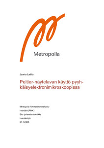 Opinnäytetyö tehtiin Metropolia Ammattikorkeakoululle. Tarkoitus oli selvittää pyyhkäisyelektronimikroskooppiin (SEM) lisäosana hankitun Peltier-elementin tuomat mahdollisuudet näytteiden tutkimiseen. Tavoitteena oli myös suorittaa laitteen käyttöönotto koululla olevaan SEM-laitteeseen ja laatia yksinkertainen käyttöohje.