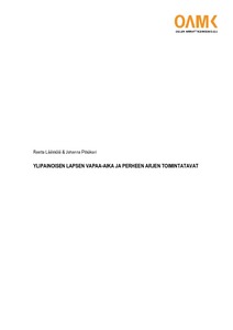 Tämän laadullisen tutkimuksen tarkoituksena on saada tietoa ylipainoisen lapsen toiminnallisesta identiteetistä lapsen harrastusten ja vapaa-ajan kautta sekä ylipainoisen lapsen perheen arjen toimintatavoista. Tutkimustehtävänä on kuvailla sitä, millainen on ylipainoisen lapsen vapaa-aika ja millaisia ovat ylipainoisen lapsen ja hänen perheensä arjen rutiinit ja toimintatavat lapsen vanhempien näkökulmasta. Tutkimus toteutettiin yhteistyössä erään Oulun yliopistollisessa sairaalassa toimivan poliklinikan kanssa. Aineisto kerättiin Webropol-ohjelman kautta. Tiedonantajina toimivat ylipainoisten lasten vanhemmat, jotka vastasivat kyselyyn poliklinikkakäynnin yhteydessä. Tutkimukseen osallistui lopulta neljä vanhempaa. Aineisto analysoitiin sisällönanalyysia käyttäen ja tulokset vahvistettiin näyttöön perustuvan tiedon kautta.