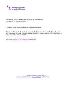 Kulmala, Ilpo; Taipale, Aimo; Sanmark, Enni; Lastovets, Natalia; Sormunen, Piia; Nuorti, Pekka; Saari, Sampo; Luoto, Anni; Säämänen, Arto (2024)