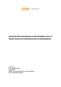 Voimalaitosgeneraattoreiden kunnossapito on tärkeä osa Suomen jatkuvan sähköntuotannon turvaamisessa. Eri mittaustekniikoiden kehittyessä pystytään tehostamaan sekä kehittämään kunnonvalvonnan eri osa-alueita. Akustinen mittaustekniikka on jo käytössä monilla eri tekniikan alueilla. Tässä opinnäytetyössä tutkittiin, onko akustisesta mittaustekniikasta hyötyä generaattoreiden kunnonvalvonnassa.