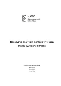 Tämä opinnäytetyö tarkastelee kassavirta-analyysin merkitystä yrityksen maksukyvyn arvioinnissa erityisesti rahoittajien näkökulmasta. Kassavirta-analyysi on keskeinen työkalu, jonka avulla voidaan arvioida yrityksen likviditeettiä ja pitkän aikavälin taloudellista kestävyyttä. Työn tavoitteena on tarjota rahoittajille selkeä malli, jonka avulla he voivat arvioida yrityksen taloudellista tilaa kassavirta-analyysin perusteella sekä ymmärtää sen vaikutukset rahoituspäätöksiin.
