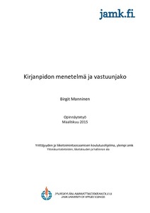 Sähköisen taloushallinnon myötä on kehittynyt sellaisia taloushallinnon ohjelmia, jotka tarjoavat lähes täysin sähköisessä muodossa hoidettavan taloushallinnon. Siksi ohjelmien tarkastelu kirjanpidon lainsäädännön ja yleisesti noudatettavan hyvän kirjanpitotavan kannalta on tärkeää. Tutkimuksen tavoitteena oli selvittää, miten kirjanpitolautakunnan (Kila) yleisohjetta kirjanpidon menetelmistä ja aineistoista voidaan soveltaa sähköisessä taloushallinnossa ja miten vastuunjako toteutetaan sähköisessä taloushallinnossa. Tarkastelun kohteena olevasta taloushallinto-ohjelmistosta tarkoituksena oli tutkia, onko ohjelmistossa kehitettävää kirjanpitäjän näkökulmasta ja selkeyttääkö tilitoimistolle tehty vastuunjakotaulukko eri toimijoiden vastuunjakoa sähköisessä taloushallinnossa.