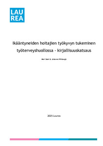 Opinnäytetyön tarkoituksena oli kuvata, miten tukea ikääntyneiden hoitajien työkykyä työterveyshuollossa. Tavoitteena oli löytää ratkaisuja ikääntyneiden hoitajien työurien jatkamiseksi tukemalla heidän työkykyään työterveyshuollossa. Opinnäytetyöstä hyötyvät ensisijaisesti työnantajat, asiakkaina olevat hoitajat sekä työterveyshoitajat. Opinnäytetyö pohjautuu Laureassa käynnissä olevaan EMERIT-hankkeeseen.