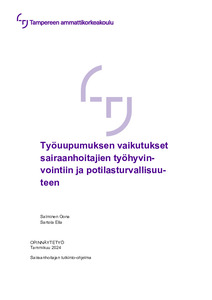 Opinnäytetyön tarkoituksena oli kuvata sairaanhoitajien työhyvinvointiin ja työuupumukseen vaikuttavia tekijöitä, sekä työuupumuksen vaikutusta potilasturvallisuuteen. Tavoitteena oli tutkitun tiedon avulla lisätä tietämystä työuupumuksen olosuhteista ja ymmärtää sen vaikutuksia potilasturvallisuuteen. Opinnäytetyön työelämäkumppanina toimi Tampereen ammattikorkeakoulu.