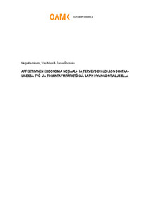 Tutkimusten tulosten mukaan eettistä kuormitusta aiheuttivat työhön sisältyvät ristiriitaiset vaatimukset ja odotukset. Työn hallittavuus, työn tavoitteiden saavuttaminen ja työyhteisön tuki ehkäisivät työn eettistä kuormitusta. Digitaalisten ratkaisujen koettiin sekä helpottavan että vaikeuttavan ammattietiikan mukaista työtä. Eettistä organisaatiokulttuuria tukivat työyhteisön tuki ja hyvä ilmapiiri, osaamisen arvostaminen, mahdollisuus muutosehdotusten esille tuomiseen sekä työn merkityksellisyyden kokeminen. Vuorovaikutus- ja tunneympäristö koettiin toimivana. Digitaalisuuden koettiin aiheuttavan sujumattomuutta vuorovaikutukseen. Kehittämistarpeina nousivat esille resurssien lisääminen, vastuunjako, työn laadukas toteuttaminen, arvostava johtaminen, vuorovaikutuksen arvostus ja kunnioitus sekä epäoikeudenmukaisuuksien käsittely. Lapin hyvinvointialueen digitaalisessa työ- ja toimintaympäristössä affektiivisen ergonomian voidaan päätellä toteutuvan melko hyvin. Opinnäytetyön tuloksia voidaan hyödyntää digitaalisten työ- ja toimintaympäristöjen affektiivisen ergonomian kehittämisessä, johtamisen tukemisessa ja affektiivisen ergonomian tarkistuslistan kehittämistyössä. Affective ergonomics is a new concept that connects the psychosocial burden of work with physical health and brain health. It includes factors having an impact on the ethical aspect of work and factors of interaction and feelings. The purpose of the research was to investigate how affective ergonomics manifests in the digital work and operating environment of social and healthcare from the perspective of professionals and experts. The aim of the research was to produce information and increase understanding of the realization of affective ergonomics in the digital work and operating environment of social and healthcare. The research was conducted in collaboration with the wellbeing services county of Lapland. The target group of the research consisted of professionals and experts working in a digital work and operational environment in remote home care, information management and digital services, and the VASA 2 project. The research was conducted as a mixed-methods study, in which quantitative and qualitative research were carried out in successive phases.