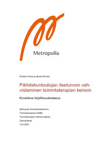 Kuntoutujan itsetunnon vahvistaminen tukee kuntoutuksessa asetettujen tavoitteiden saavuttamista. Tähän käytettävistä keinoista on tärkeää tarjota toimintaterapeuteille tutkittua tietoa. Tämän opinnäytetyön tarkoituksena oli koota tietoa keinoista, joilla voidaan vahvistaa aikuisen päihdekuntoutujan itsetuntoa toimintaterapian keinoin. Tavoitteena oli, että kootun tiedon avulla toimintaterapeutit voivat kehittää osaamistaan erityisesti Helsingin kaupungin päihdepalveluissa.