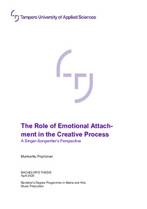 The purpose of this thesis was to explore the role of emotional attachment in the music-making process and its impact on the songwriter, the process itself, and the final creation. The goal of this thesis was to share singer-songwriters’ music-making processes and thereby provide peer experiences to other singer-songwriters and music makers.
