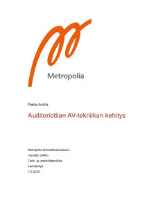 Tässä toiminnallisessa opinnäytetyössä toteutettiin AV-tekniikan päivitys nimeämättömän yrityksen pääkonttorin auditoriotilaan. Tilan käyttötapojen ja tapahtumien luonteiden ja osallistujamäärien kehittyessä alkuperäinen AV-tekniikka ei enää vastannut riittävän hyvin erilaisiin käyttötarpeisiin.