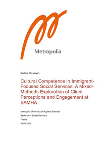 This thesis aimed to examine how immigrant clients perceive cultural competence among social service professionals at the Substance Abuse and Mental Health Association (SAMHA) and how these perceptions influence their engagement with SAMHA's services. The thesis examined immigrant clients’ experiences with social service professionals, focusing on factors such as respect for cultural backgrounds, culturally tailored services, and language support.