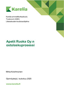 Tämän opinnäytetyön tavoitteena oli kuvata toimeksiantoyrityksenä toimivan Apetit Ruoka Oy:n ostolaskuprosessi. Lisäksi tavoitteena oli pohtia ideoita prosessin kehittämiseksi.