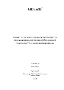 Opinnäytetyö käsitteli suunnittelijoiden ja rakennushankkeen toteuttajan yhteen sovittamisen haasteita käyttäen esimerkkihankkeena Espoossa sijaitsevaa uudisrakennuskohdetta. Työssä pyrittiin selvittämään, missä vaiheissa ongelmia ilmenee eniten ja miten yhteistyötä voidaan parantaa. Tarkoituksena oli myös kartoittaa vastuut ongelmista ja löytää ratkaisuja tehokkaampaan yhteensovittamiseen. Tavoitteena oli tunnistaa yleisimmät ongelmakohdat suunnittelijoiden, ja työmaan yhteistyössä sekä vertailla havaintoja alan kirjallisuuteen. Aineistoa kerättiin haastattelemalla alan asiantuntijoita ja tutustumalla vallitseviin käytäntöihin.