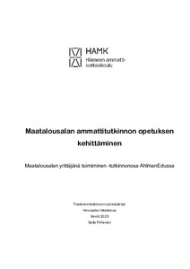 Tämän opinnäytetyön tarkoituksena oli kehittää maatalousalan ammattitutkinnon opetusta AhlmanEdussa, erityisesti tutkinnonosassa "Maatalousalan yrittäjänä toimiminen". Taustalla on ajankohtainen tarve uudistaa ammatillista koulutusta Suomessa, vastata opetukseen kohdistuviin resurssihaasteisiin sekä säilyttää koulutustarjonta maatalousalalla. Toimeksiantajana toimii Ahlmanin koulun Säätiö sr (AhlmanEdu), jolla on pitkä historia maatalouskoulutuksen tarjoajana.