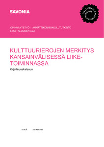 Kun yritys lähtee laajentamaan toimintaansa oman maan rajojen yli, se vaatii yhteistyötä eri kulttuurien edustajien kanssa, ja erilaisten kulttuurien kohdatessa saattaa kumpikin osapuoli kohdata rajunkin kulttuurishokin. Kulttuurieroja tutkimalla yritykset voivat oppia keinoja liiketoimintasuhteiden muodostamiseen ja sopivaan viestintään itselleen vieraan kulttuurin edustajien kanssa. Tämän tutkimuksen tarkoituksena oli tarkastella kulttuurierojen merkitystä kansainvälisessä liiketoiminnassa. Tavoitteena oli ymmärryksen ja tiedon lisääminen kulttuurisensitiivisyyden tärkeydestä kansainvälisessä liiketoiminnassa menestymiseen sekä kulttuurierojen vaikutuksista yritysten välisissä neuvottelutilanteissa.