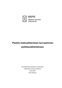 Tämän opinnäytetyön tavoitteena oli tutkia pankin maksuliikenteen toimivuutta ja turvallisuutta mahdollisessa poikkeustilanteessa sekä sitä, miten pankissa varaudutaan mahdollisiin häiriötilanteisiin. Opinnäytetyö käsittelee pankin maksuliikennettä osana kriittistä infrastruktuuria sekä maksamisen turvallisuutta. Lisäksi työssä perehdytään maksamisen mahdollistavaan infrastruktuuriin sekä erilaisiin varautumistoimenpiteisiin ja sääntelyyn, joiden avulla maksamista turvataan.
