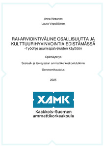 RAI-ARVIOINTIVÄLINE OSALLISUUTTA JA KULTTUURIHYVINVOINTIA EDISTÄMÄSSÄ -Työohje asumispalveluiden käyttöön