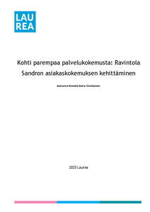 Opinnäytetyön tavoitteena oli kehittää Sandron asiakaskokemusta tunnistamalla siihen vaikuttavat keskeiset tekijät ja esittämällä konkreettisia kehitysehdotuksia. Työ toteutettiin toimeksiantona Noho Partnersille, ja sen hyötyjiä olivat niin asiakkaat kuin henkilöstö ravintolassa. Taustalla vaikutti ravintola-alan kiristynyt kilpailu ja asiakkaiden kasvaneet odotukset, jotka korostavat asiakaskokemuksen merkitystä kilpailuetuna. Teoreettinen viitekehys pohjautui asiakaskokemukseen, palvelumuotoiluun ja ravintola-alan trendeihin liittyvään kirjallisuuteen ja aiempiin tutkimuksiin.