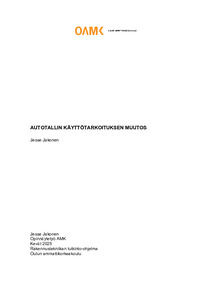 Rakentamisluvan haku käyttötarkoituksen muutosta suunniteltaessa on prosessi, joka eroaa sisällöltään ja laajuudeltaan uudiskohteiden luvanhakuprosessista. Opinnäytetyössä luotiin pohjatiedot rakentamisluvan hakemiseen. Opinnäytetyössä tilaajalle tehtiin myös luonnossuunnitelmat ja luonnospiirustukset rakentamisluvan hakua varten.