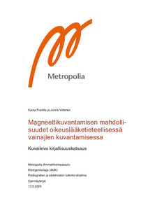 Vainajien kuvantaminen lukeutuu maailmalla entistä useammin osaksi kuolemansyyn selvittämistä. Röntgenhoitajien koulutus oikeuslääketieteelliseen kuvantamiseen ja sen tuomiin erityispiirteisiin on kuitenkin yleisesti hyvin vähäistä. Tämän tutkimuksen tarkoituksena oli kartoittaa tietoa magneettikuvantamisen käytöstä vainajien oikeuslääketieteellisessä kuvantamisessa. Tutkimuksen tavoitteena oli laajentaa röntgenhoitajien ja röntgenhoitajaopiskelijoiden tietämystä oikeuslääketieteelliseen kuvantamiseen liittyen sekä tuoda tutkimustietoa helpommin saataville.