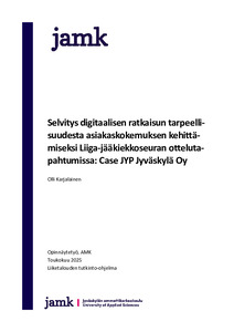JYP Jyväskylä Oy suunnittelee uuden digitaalisen ratkaisun luomista, sillä he kokevat sen olevan sopiva keino luoda asiakkailleen positiivisemman asiakaskokemuksen ottelutapahtumissa, joka vaikuttaisi täten myös heidän kulutuskäyttäytymiseen kasvattaen myyntiä. Heidän tarjoamien tuotteiden ja palveluiden ostamiseen sekä käyttämiseen on ottelutapahtumassa rajoitetusti aikaa ja ostamisprosessin ollessa hidas, heikentää se niin asiakaskokemusta kuin myyntiä. Opinnäytetyön tavoitteena oli toteuttaa kartoitus, joka selvittää miten digitaalisen ratkaisun avulla voitaisiin kehittää JYPin ottelutapahtumien asiakaskokemusta.