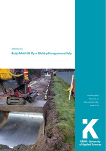Sain työnantajaltani, Reijo Mehtälä Oy:ltä, toimeksiannon laatia yritykselle RALA-pätevyyshakemuksien tekemiseen tarvittavan aineiston. Omana oppimistavoitteenani oli selvittää sekä perehtyä infrarakentamisen laadun tuottamiseen ja hallintaan. Toimeksiannon taustalla oli yrityksen tahtotila hakea todennettuja pätevyyksiä Rakentamisen laatu RALA ry:n rekisteriin. Yrityksellä ei ole ollut aiemmin todennettuja näyttöjä omasta osaamisestaan, joten RALA-menettelyn avulla haluttiin vahvistaa yrityksen osaamisen taso.