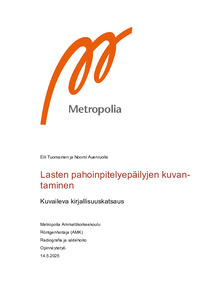 Opinnäytetyö toteutettiin kuvailevana kirjallisuuskatsauksena, jonka aineiston haussa käytettiin systemoidun kirjallisuuskatsauksen piirteitä. Tarkoituksena oli selvittää kansainvälisesti käytettyjä lasten pahoinpitelyepäilyjen kuvantamissuosituksia ja vertailla niiden yhtäläisyyksiä ja eroja. Aineiston haku suoritettiin hyödyntämällä Pubmed, ScienceDirect, CINAHL ja ProQuest-tietokantoja. Kuvantamissuosituksia etsittiin myös manuaalisesti. Aineistoa löytyi 11 kansainvälistä kuvantamissuositusta, jotka olivat julkaistu vuoden 2014 ja 2024 välillä. Aineisto analysoitiin induktiivista sisällönanalyysin menetelmää hyödyntäen.