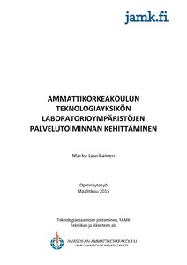 Opinnäytetyön aiheena oli ammattikorkeakoulun laboratorioympäristöihin liittyvän palvelutoiminnan kehittäminen. Työn toimeksiantajan, Jyväskylän ammattikorkeakoulun teknologiayksikön, laboratorioympäristöissä toteutetaan palvelutoimintaa eri lähtökohdista. Laboratorioympäristöt palvelevat nimittäin opetustoimintaa, elinkeinoelämää kehittävää TKI-toimintaa sekä maksullista palveluliiketoimintaa, joka tosin on yksi TKI-toiminnan toteuttamisen muodoista.