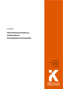 Tämän opinnäytetyön tavoitteena on tuottaa liiketoimintasuunnitelma Viestintäpalvelu Kirkastukselle, joka toimii opinnäytetyön toimeksiantajana. Tarkoituksena on selvittää Suomen helluntaiseurakuntien viestin- täpalveluiden tarpeita sekä palvelutarjonnan kysyntää asiakastutkimuksen avulla. Tuotoksena on Business Model Canvas, johon uusi liiketoimintasuunnitelma kiteytetään. Teoriaviitekehys rakentuu liiketoimintasuunnitelmaan sisältyvien aihepiirien sekä seurakuntakentän viestinnän erityispiirteiden ympärille.