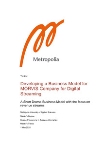This thesis focuses on developing a short drama business model for a small film and television production company in China. The case company is mainly engaged in the advertising video business and has a high-quality level of production. Currently, the case company is planning to develop a short drama business to increase its revenue streams. However, so far, this business lacks a well-researched and clear business model. Therefore, this study aimed to develop a short drama business model for the case company, focusing on revenue stream.