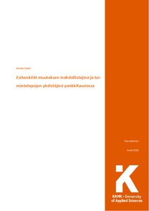 Osuuspankkien määrä on laskenut lähivuosina merkittävästi ja jatkaa edelleen laskuaan. Esihenkilöillä on merkittävä rooli muutoksen läpiviemisessä ja toimintatapojen yhdistämisessä pankkifuusiossa. Opinnäytetyön toimeksiantajana oli Pohjois-Hämeen Osuuspankki ja sen tavoitteena oli tukea esihenkilöitä fuusioprosessissa ja yhdenmukaistaa toimintatapojen yhtenäistämistä. Pohjois-Hämeen Osuuspankin fuusio toteutui 1.5.2025. Opinnäytetyön tarkoituksena oli kartoittaa esihenkilöiden ajatuksia fuusion liittyen ja selvittää millaista tukea he olivat saaneet työlleen muutoksessa, ja mitä he toivovat fuusion jälkeiseltä ajalta.
