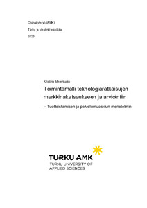 Opinnäytetyön tavoitteena oli kehittää selkeä, modulaarinen ja monistettavissa oleva toimintamalli teknologiaratkaisujen markkinakatsauksen ja arvioinnin tekoon. Toimintamallin tavoitteena oli mahdollistaa systemaattisten ja tasalaatuisten selvitysten toteuttamisen markkinoilla olevista vaihtoehdoista eri asiakastarpeisiin.