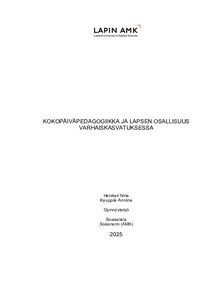Kokopäiväpedagogiikka ja lapsen osallisuus varhaiskasvatuksessa