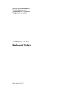 Tässä opinnäytetyössä luotiin tornipuolustuspeli Unityllä käyttäen 3D-malleja. Opinnäytetyön peli on demoversio. Peli on suunniteltu käyttäen suppeaa pelisuunnitelmaa. Pelin 3D-mallit on luotu käyttäen Blender 3D-mallinnusohjelmaa. Pelin grafiikat on tuotettu GIMP2-kuvankäsittelyohjelmalla. Pelin viholliset ja tornit on toteutettu 3D-malleina. Pelissä on tarkoituksena puolustaa omaa tukikohtaa vihollisaalloilta, jotka tulevat tietä pitkin. Lopputuloksena saatiin aikaan toimiva demoversio Mechanical Warfare tornipuolustuspelistä.